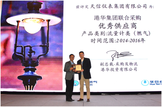 近日,天信儀表集團有限公司榮獲2014~2016年港華集團聯合采購優秀供應商(燃氣流量計類)的稱號,是天信繼2010~2011年度獲獎后再次獲此殊榮。