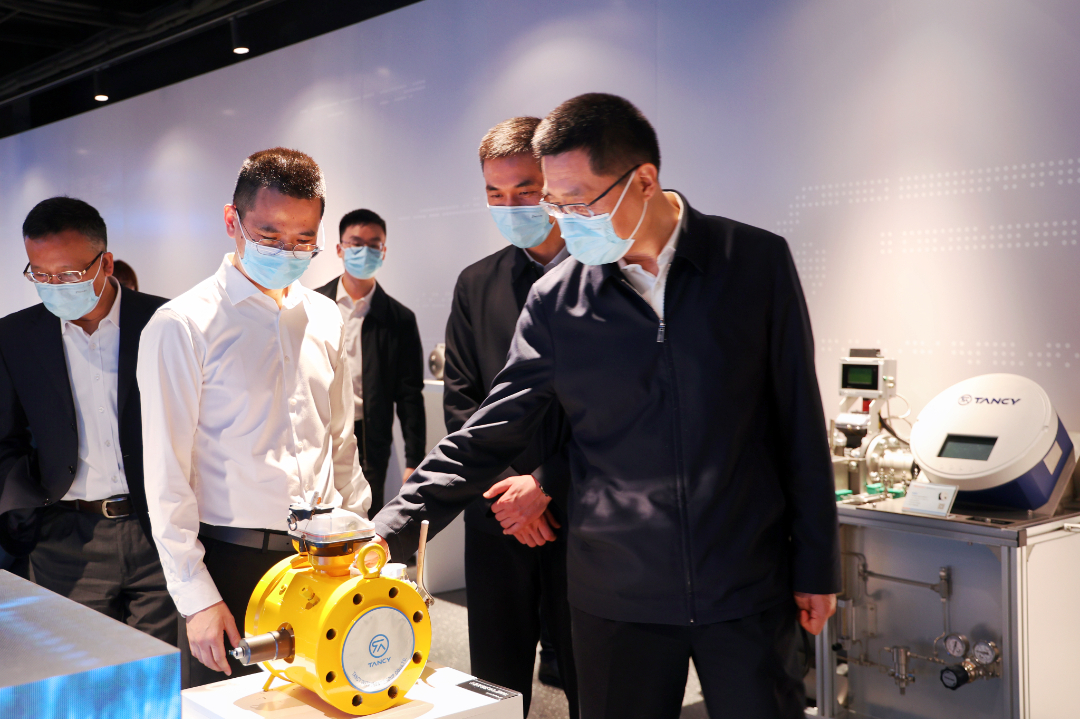 在展廳產品參觀交流過程中,李孝評總經理圍繞公司智慧燃氣計量、油品計量、智慧水務計量、智慧家庭安全控制系統等詳細地講解了系列產品,盧副省長對計量產品的具體運作原理、技術亮點、產品安全性及產品節能效率進行了詳細地詢問,并表示無負壓供水技術關系基本民生,讓高層建筑供水不僅節能過半而且完全實現智能化,是老舊小區改造的福音。
